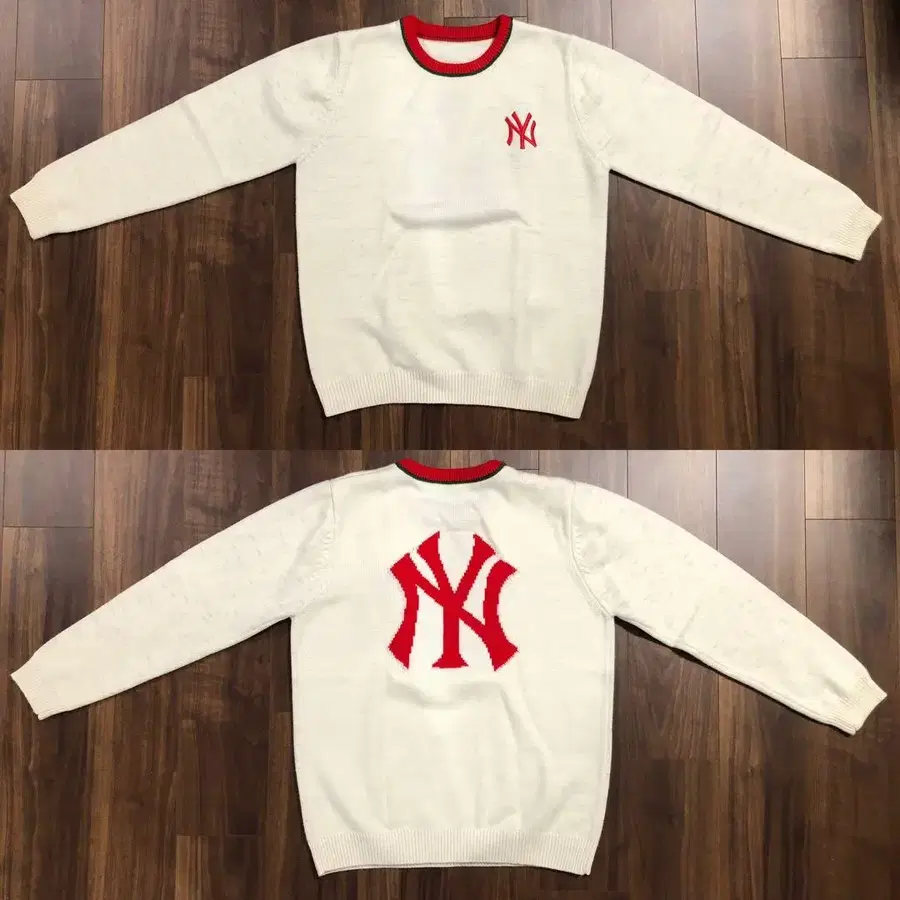 뉴욕 양키스 크루넥 니트 스웨터 화이트 레드 그린 빅 로고 셰리