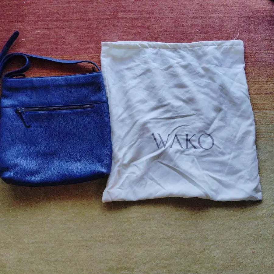 WAKO 네이비 천연 가죽 숄더백
