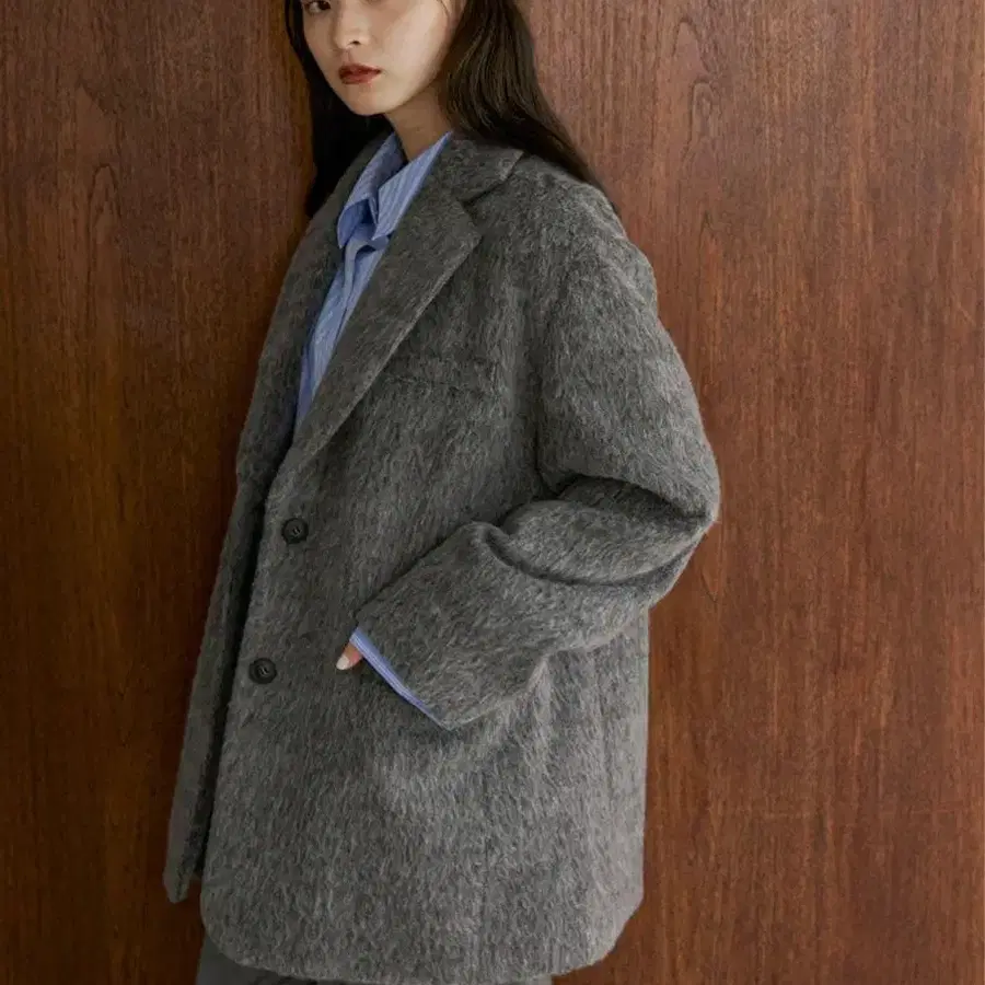 샤기 테일러드 오버 자켓 멜란지 그레이 M