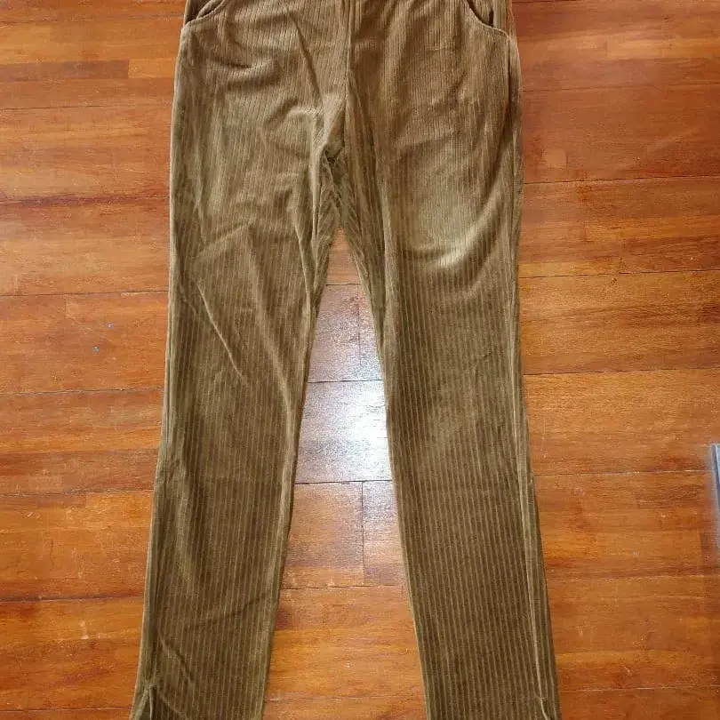 카키 브라운 코듀로이 캐주얼 팬츠 여성용 M 2포켓