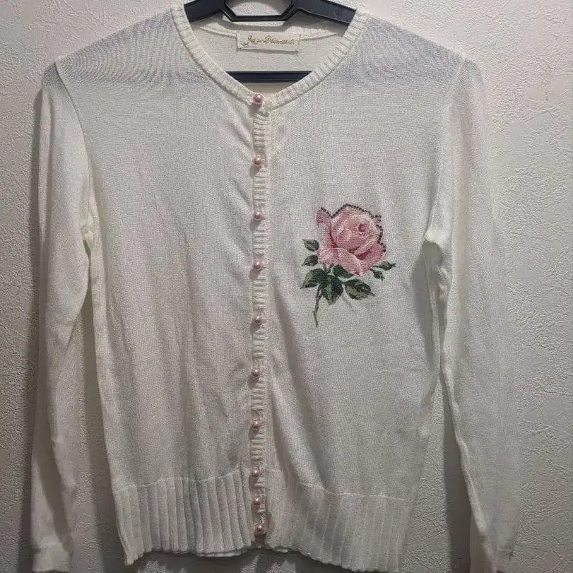 지저스 디아망테 장미 로즈 화이트 가디건 펄 버튼