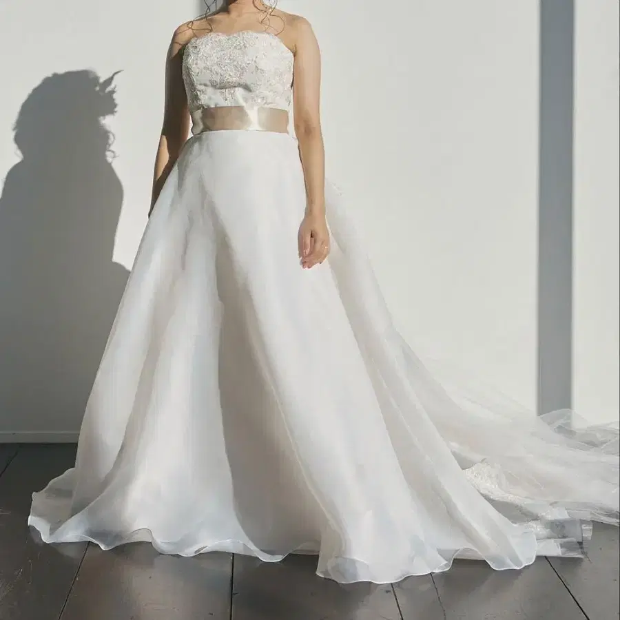 화이트 웨딩 드레스 스트랩리스 A라인