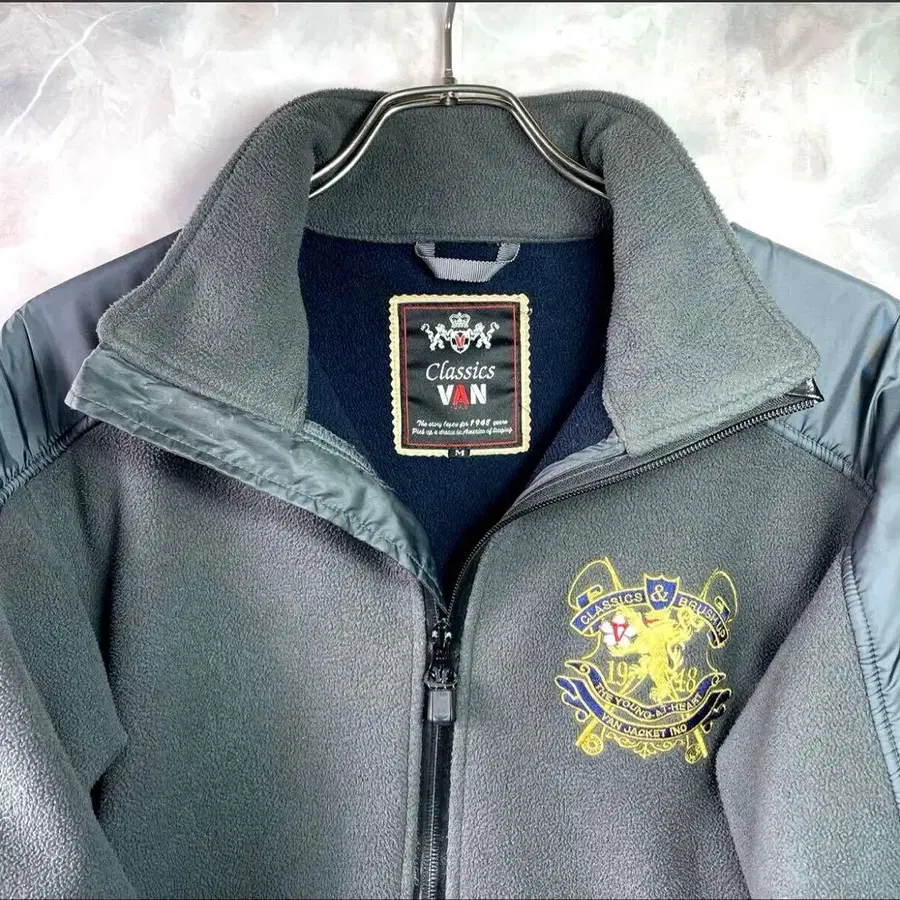 VAN JAC Classics 자수 패치 플리스 집업 블루종