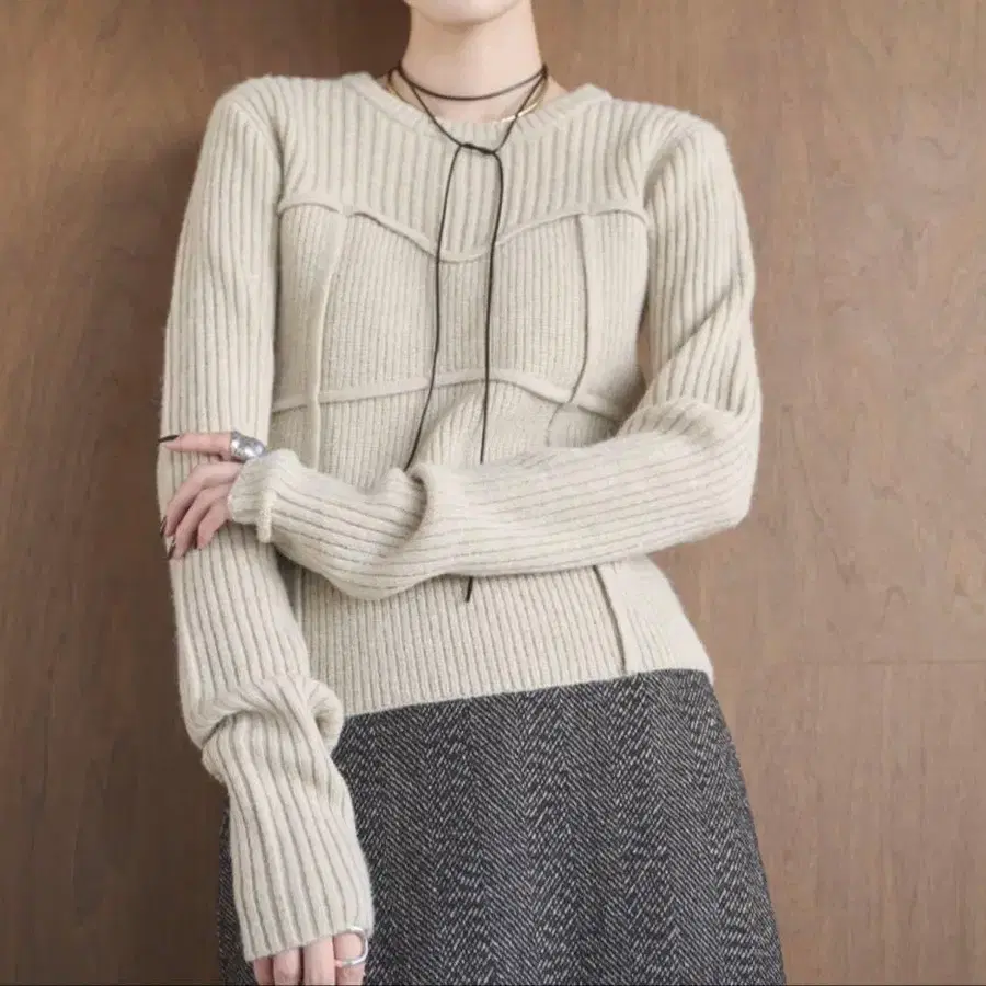 AIC. 뷔스티에 콤비네이션 리브 니트
