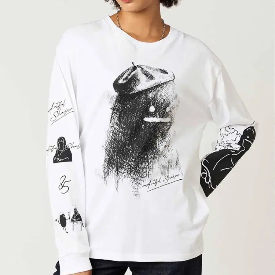 그라니프 아트풀 섀도우 화이트 긴팔 티셔츠