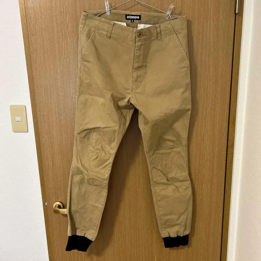 atmos M 사이즈 베이지 치노 팬츠 밑단 리브 포함