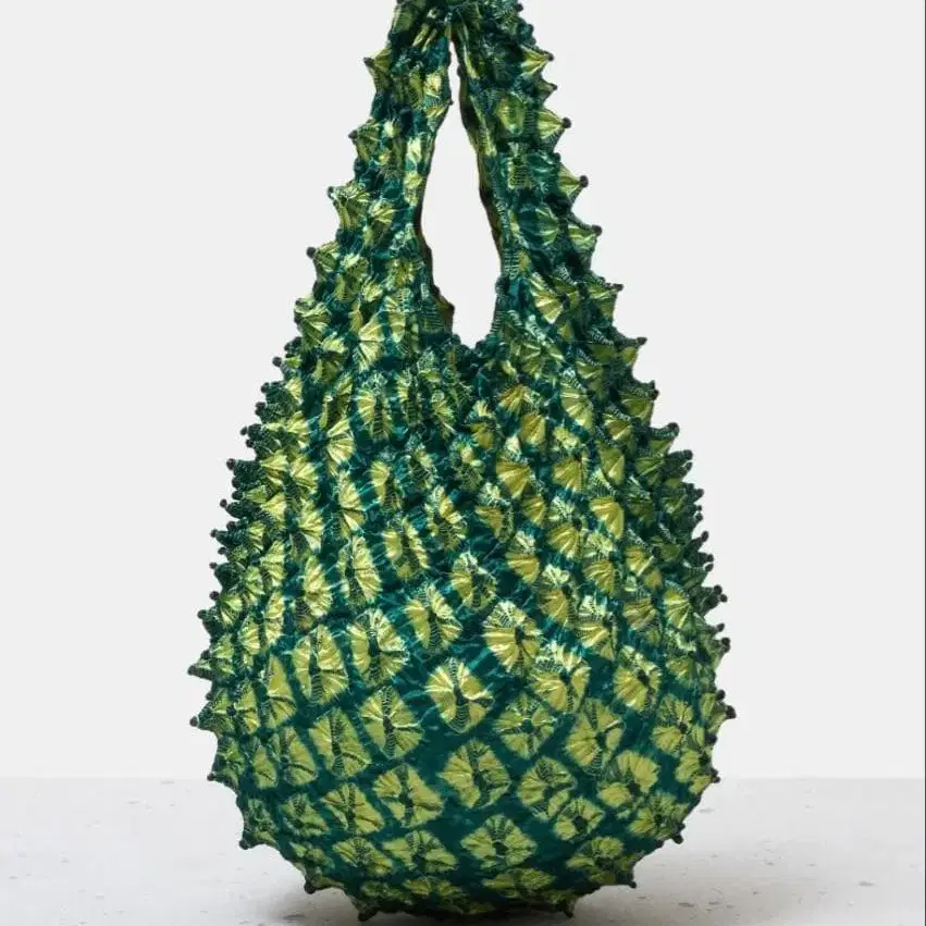 폴리에스테르 새틴을 원형으로 봉제하고, 시보리 염색을 한 백은 신축성이 풍부하며, 물건을 넣지 않은 상태는 매우 컴팩트하여 휴대하기 편리하면서도 A4 사이즈까지 펼쳐집니다.