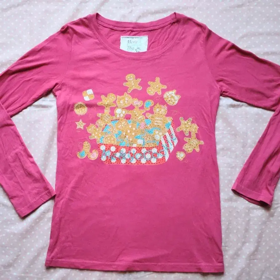 Pebbly(페블리) 큐빅 긴팔 티셔츠 핑크 고양이 컷소