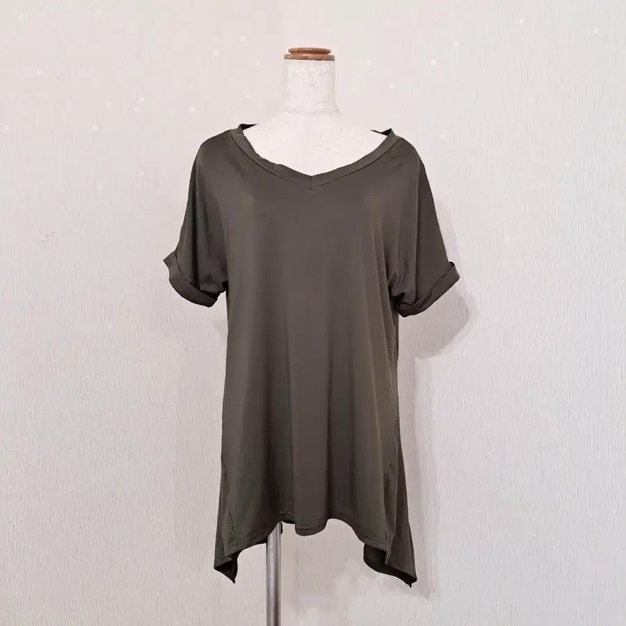 원웨이 [ F ] 2WAY 반팔 풀오버 카키 계열 무지 라운드넥