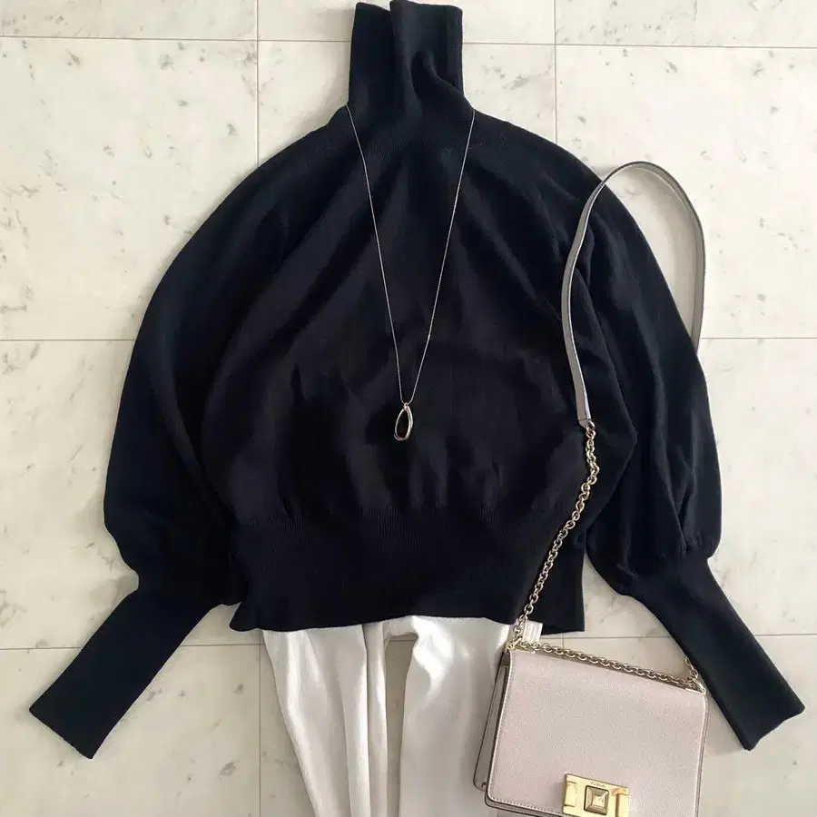 새상품급 파비아나 필리피 메리노울 볼륨 소매 하이넥 숏 니트