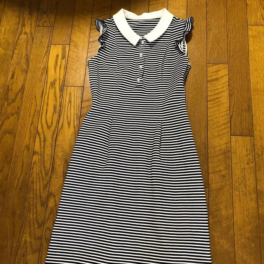 스트라이프 슬리브리스 원피스