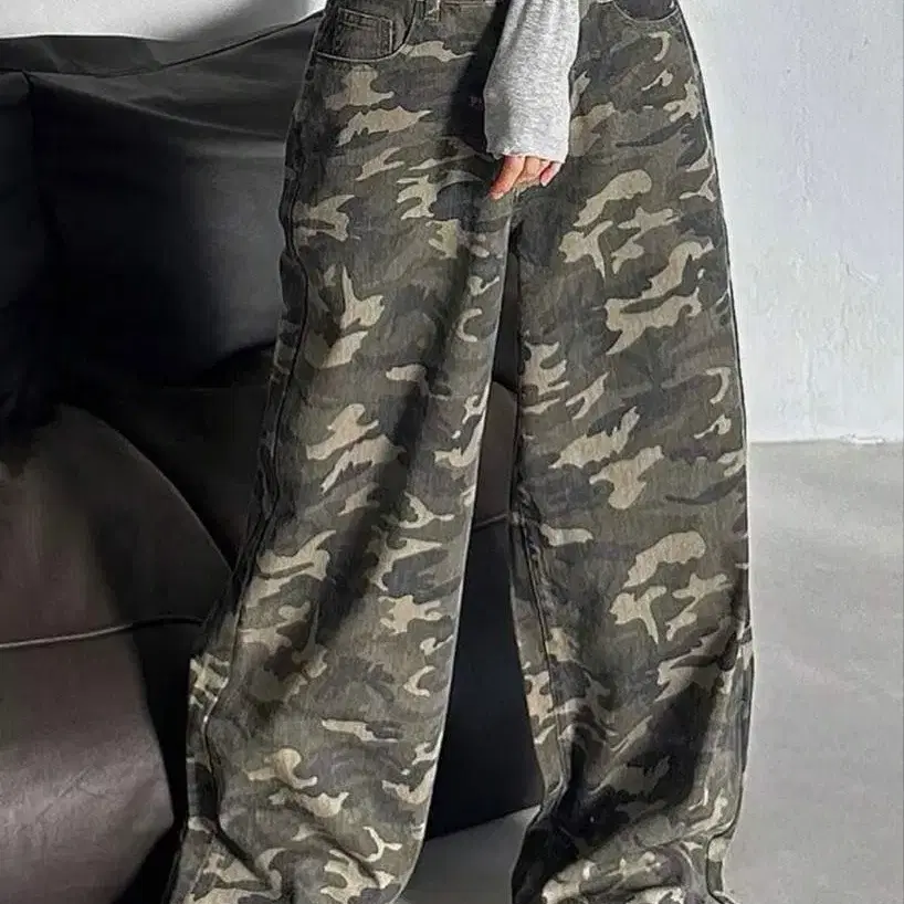 미사용 새상품 SHEIN DAZY 카모플라쥬 스트레이트 레그 청바지 XL