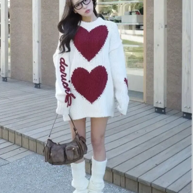 하트 로고 로우게이지 니트 튜닉