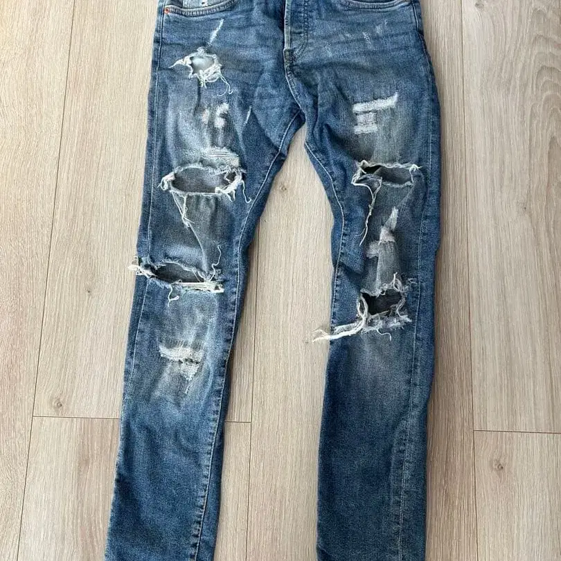 B DENIM 스키니 데님 데미지 가공