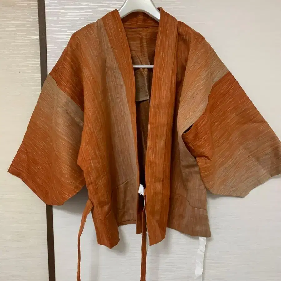 오렌지 계열 스트라이프 넓은 소매 기모노 2부식 M~L