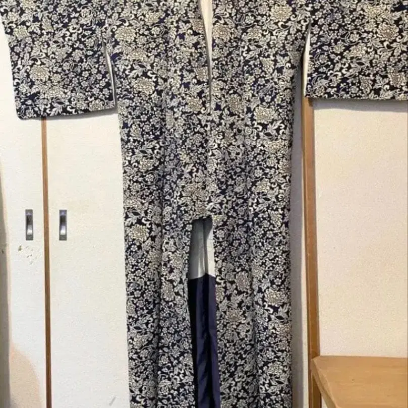 고급 중고 기모노를 취급하는 가게 (교토)에서 21,000엔에 구매했습니다. 네이비 바탕에 화이트와 골드 색상의 화려한 당초 무늬입니다. 경사나 식사 모임, 무대 관람 등 외출복으로 어떠신가요? 화이트와 네이비 색상이어서 젊고 고급스러운 인상을 줍니다.