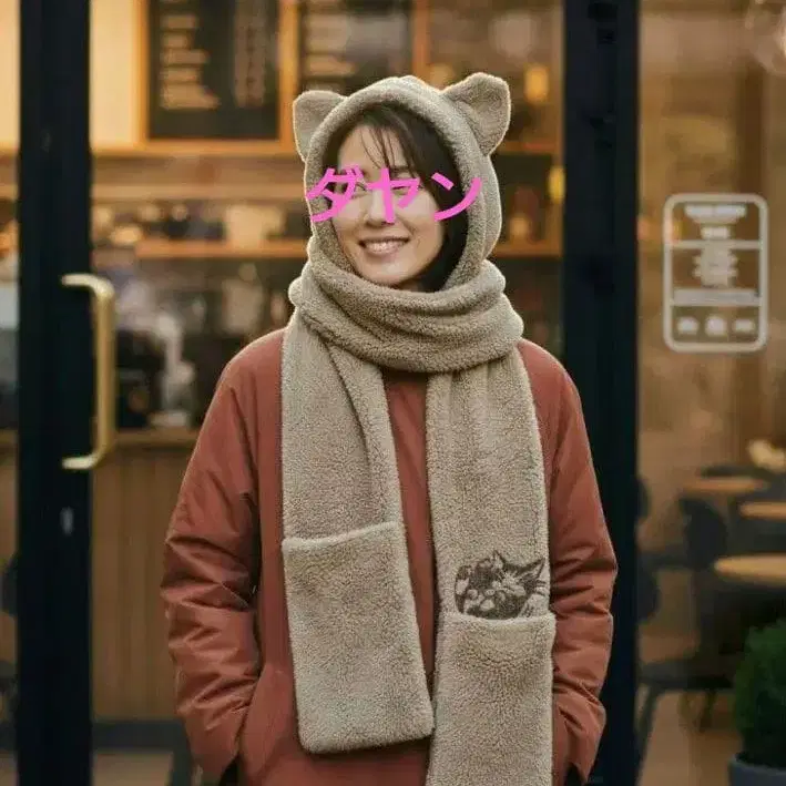 와치필드 다얀 고양이 귀 후디 포켓 부착 머플러