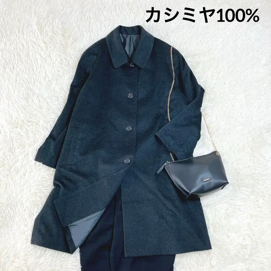 • 새상품급 캐시미어 100% 미디 기장 코트 블랙 퍼 포함 여성용