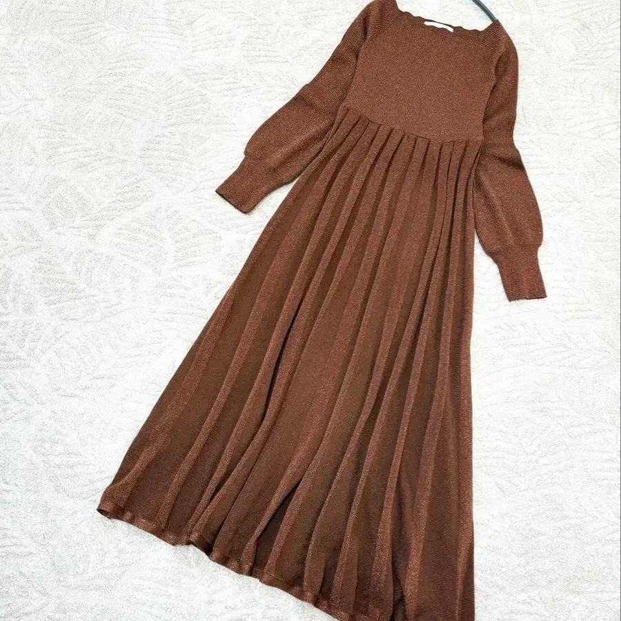 새상품급 릴리 브라운 플리츠 니트 원피스 양모 라메 반짝이 롱