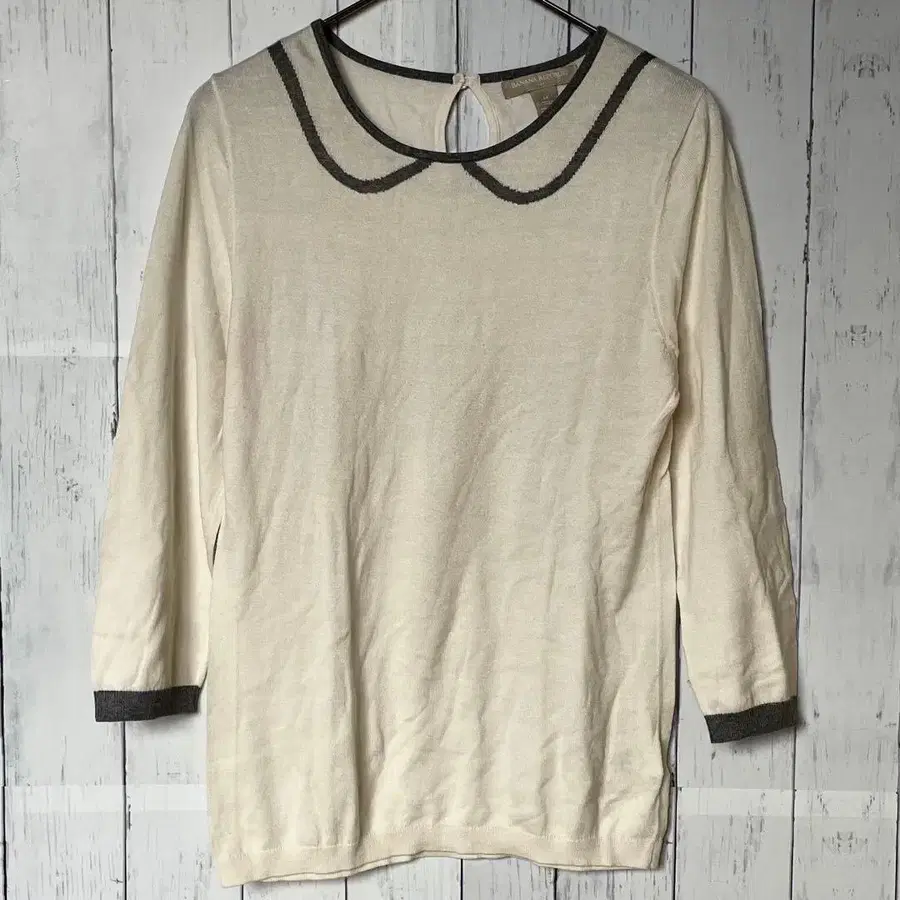 트릭 아트 같은 [ 피터팬 칼라 ( 둥근 카라 ) ] 디자인이 눈길을 끄는 고급 니트입니다.