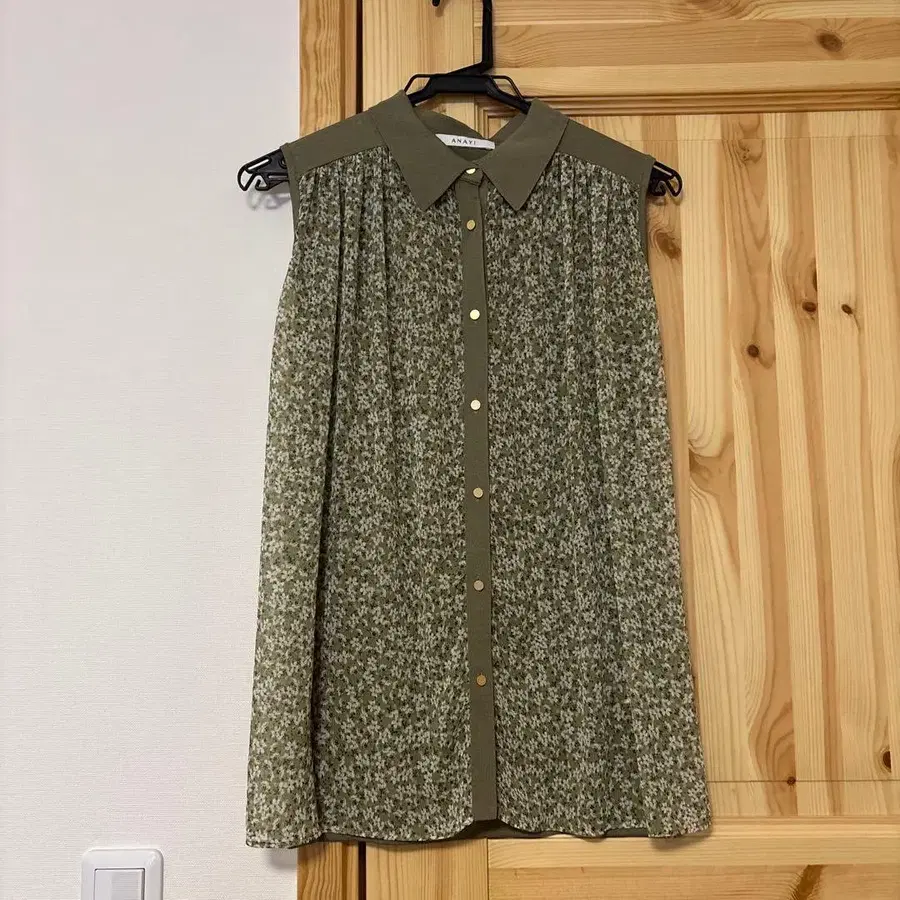 ANAYI 꽃무늬 슬리브리스 셔츠 올리브 그린