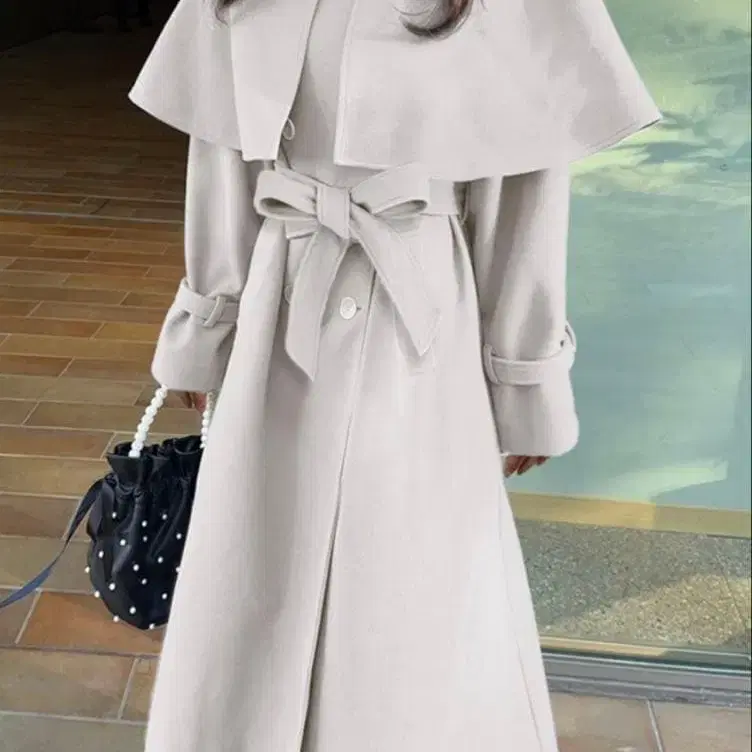 리본 벨트 케이프 포함 롱 코트[kz379]