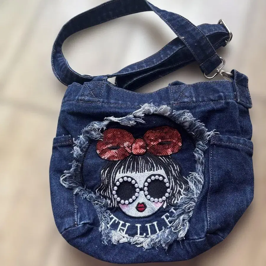 데님 캐릭터 숄더백