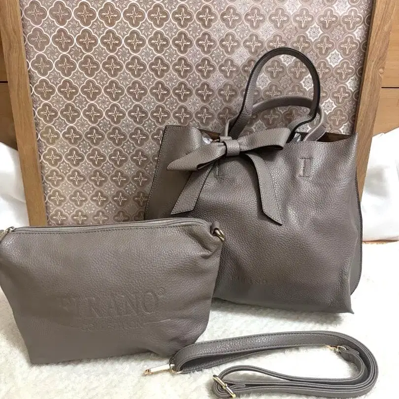 FIRANO 리본 포함 그레이 핸드백 파우치