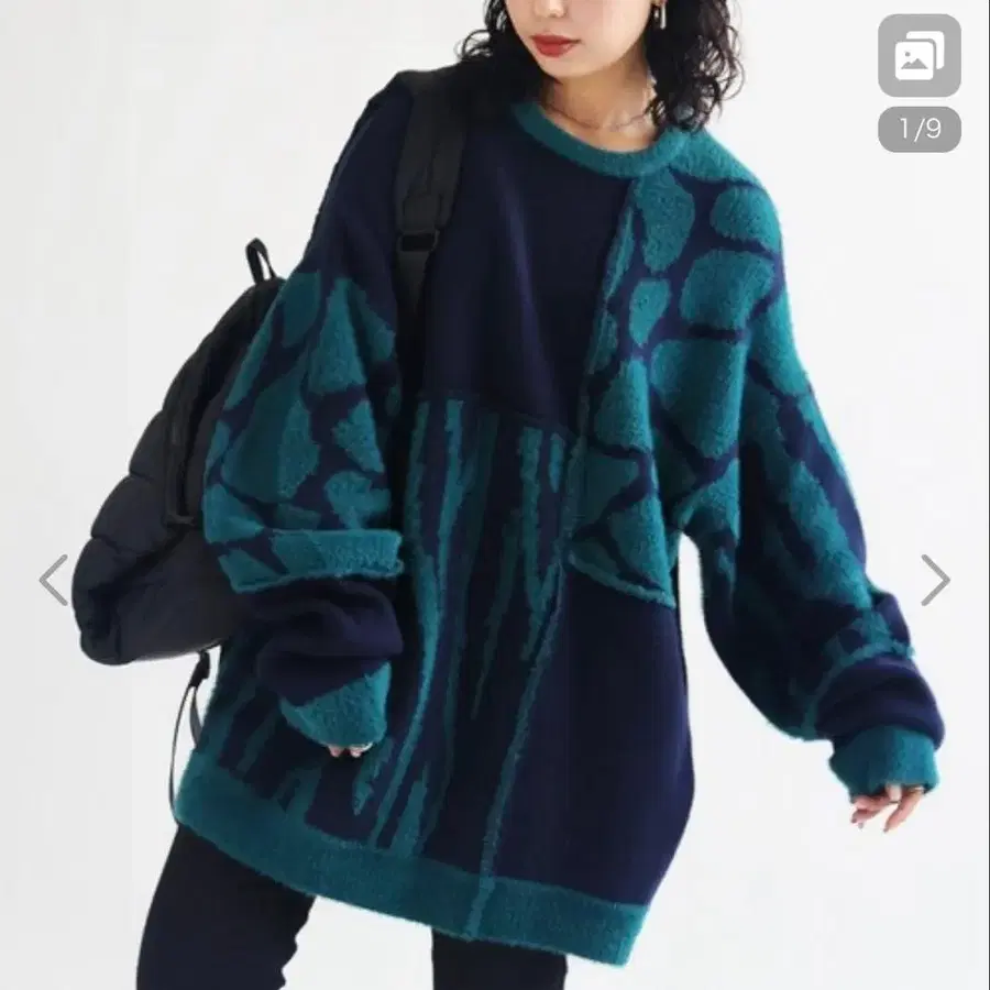 안티카 antiqua 다크 블루 그린 애니멀 프린트 니트