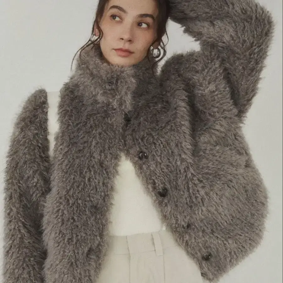 ANGIE 인조 모피 블루종 (샤기 퍼) 그레이