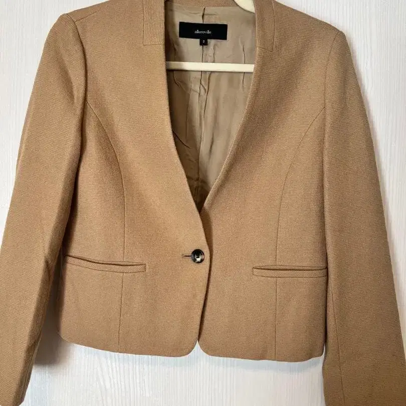 베이지 노카라 자켓 울 혼방