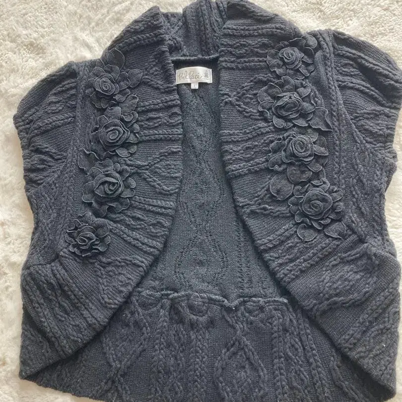 Bel Paci 블랙 꽃 모티브 니트 가디건 반팔 볼레로