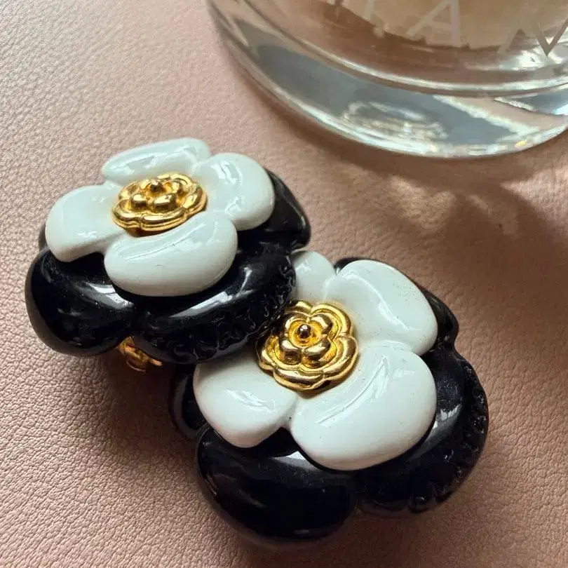 CLATHAS 까멜리아 에나멜 귀찌 (큼직한/블랙/화이트/골드)