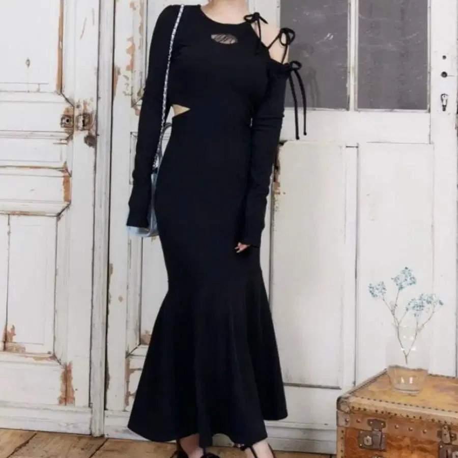 EATME 리본 컷 아웃 머메이드 원피스 black 블랙