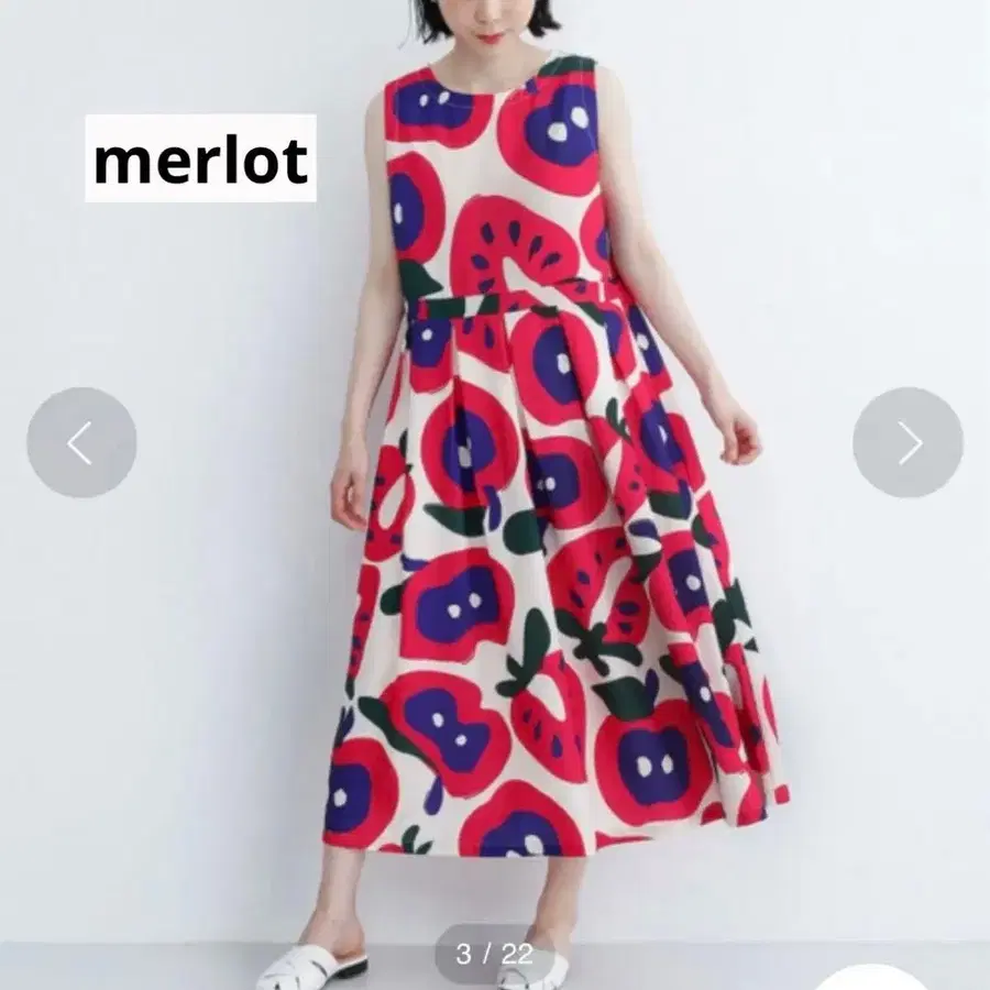 [ 레어 ] merlot 멀로 딸기 사과 패턴 슬리브리스 원피스