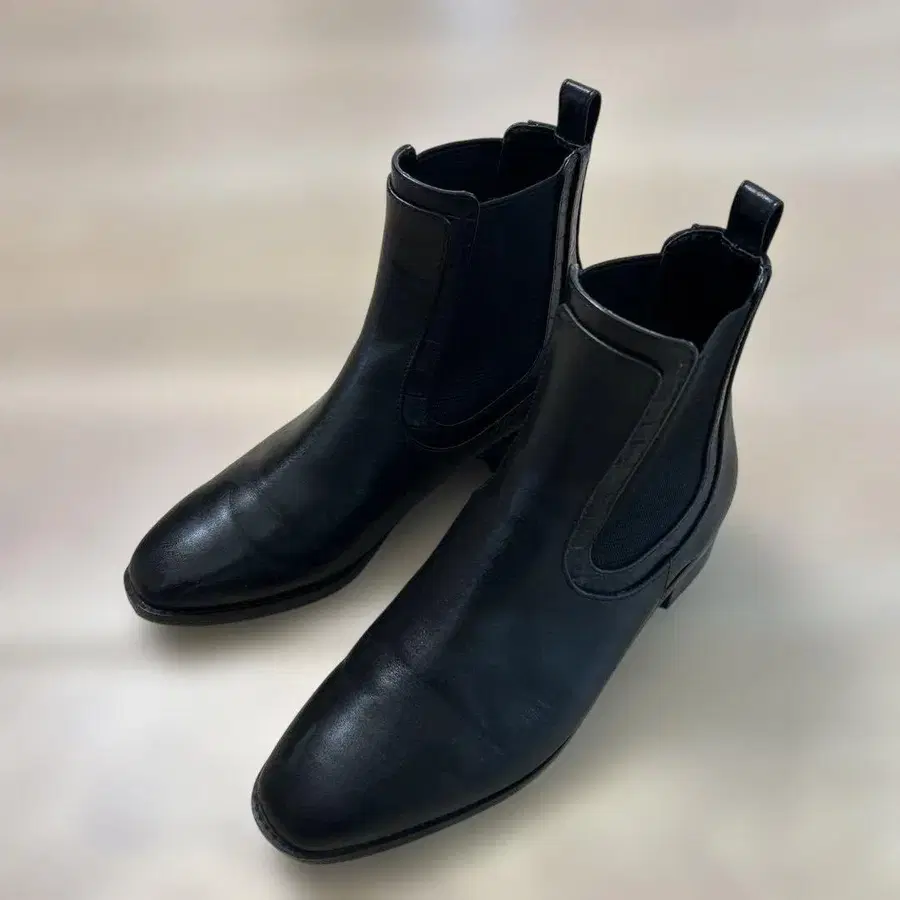 블랙 가죽 사이드 고어 부츠