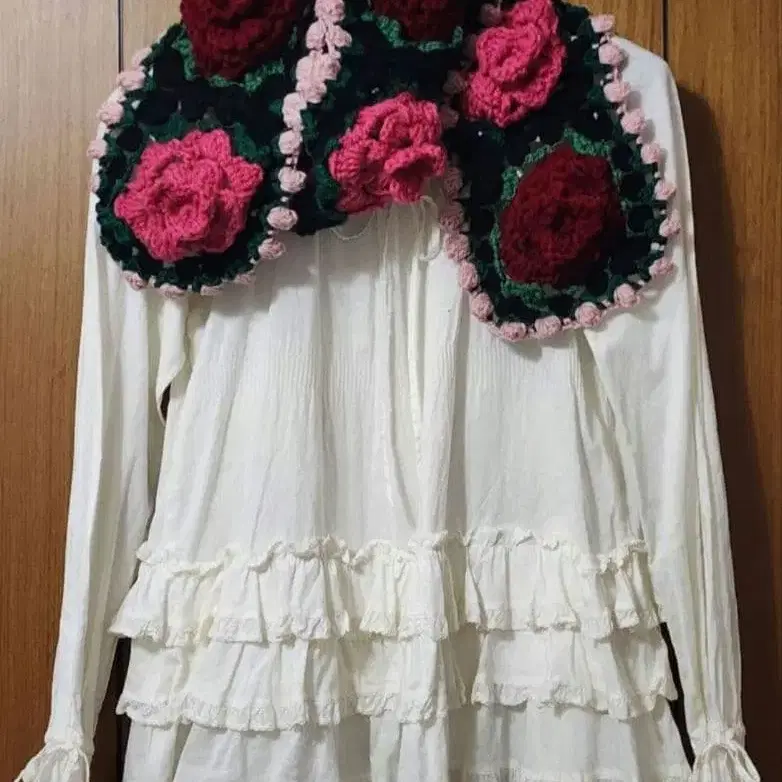 입체 장미 모티브 뜨개질 프릴 머플러 포테치노 사에라 지우 벨퍼