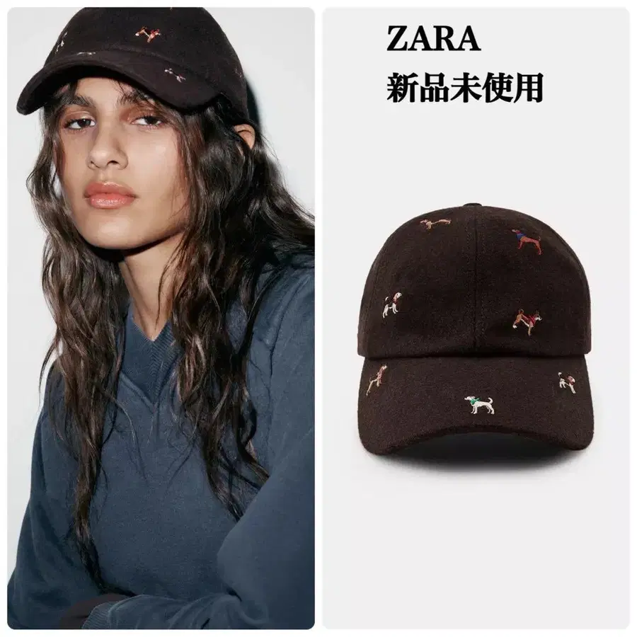 완판템 ZARA 울 소재 강아지 자수 캡 택 포함 새상품