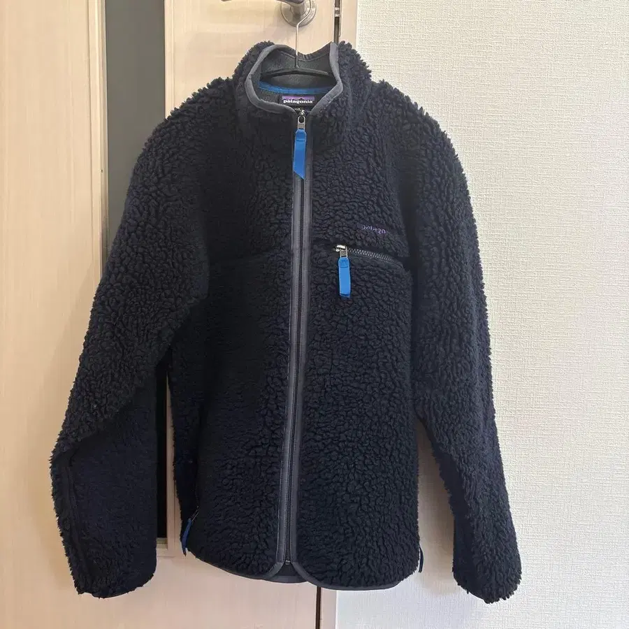 가슴 부분에는 퍼플 자수의 patagonia 로고, 지퍼 부분에는 블루 손잡이가 악센트입니다. 디자인성과 기능성을 겸비한, 가을/겨울 아우터로는 틀림없는 한 벌입니다.