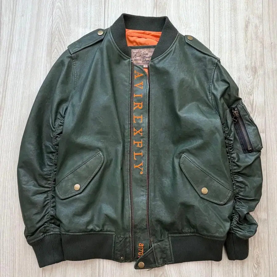 [ 레어 ] AVIREXFLY 가죽 자켓 MA-1 다크 그린 L