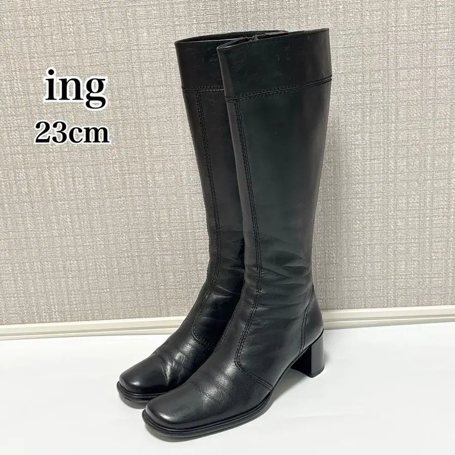 새상품급 ing 잉그 가죽 롱 부츠 23cm 블랙 사이드 지퍼