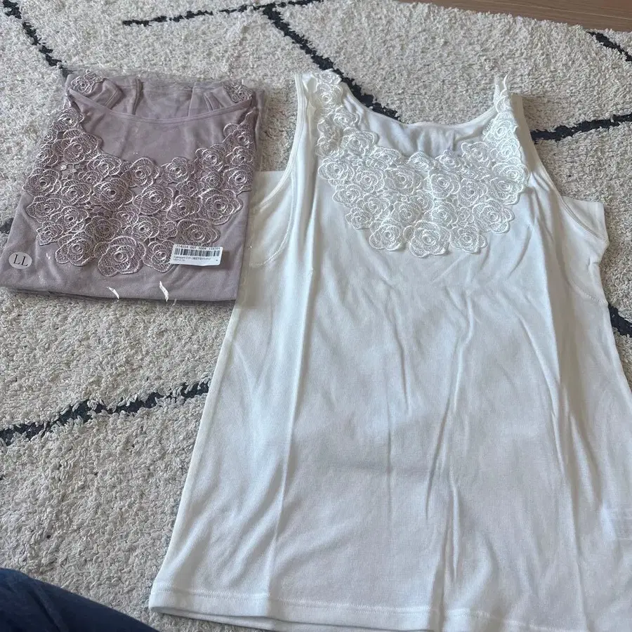 레이스 장식 탱크탑 화이트 실크 로즈 LL