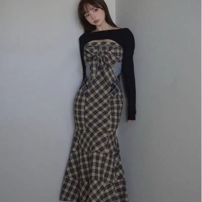 앤드메리 주니 체크 드레스 베이지 S