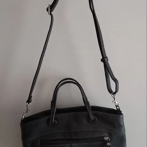 가족에게서 1회 정도 사용 후 물려받았으나, 사용할 기회가 없어 판매합니다. ※ 세로 → 약 22cm ※ 가로 → 약 33cm ※ 바닥 → 약 24cm x 10.5cm ※ 끈 → 최대 약 126cm ✬ 약간의 오차는 용서해 주십시오. * 외부 지퍼 포켓 1개 * 내부 포켓 3개 (내부 1개는 지퍼 부착) 3개의 칸막이 있음 작은 가방이지만 칸막이가 있어 넣은 물건이 한눈에 보이는 점이 좋다고 생각했습니다. 개인 검품이지만 눈에 띄는 흠집이나 얼룩은 보이지 않습니다. 세금 포함 18700엔에 구매했다고 들었습니다. 부드러워서 가볍게 접어서 포장할 예정입니다. 잘 부탁드립니다. 합성 피혁 소재의 블랙 2WAY 숄더백, 외부에 지퍼 포켓 부착. - 색상: 블랙 - 디자인: 핸드백과 숄더백의 2WAY - 소재: 합성 피혁 - 포켓: 외부 지퍼 포켓 있음 - 바닥 부분: 금장 장식 부착 바닥 방문해 주셔서 감사합니다.