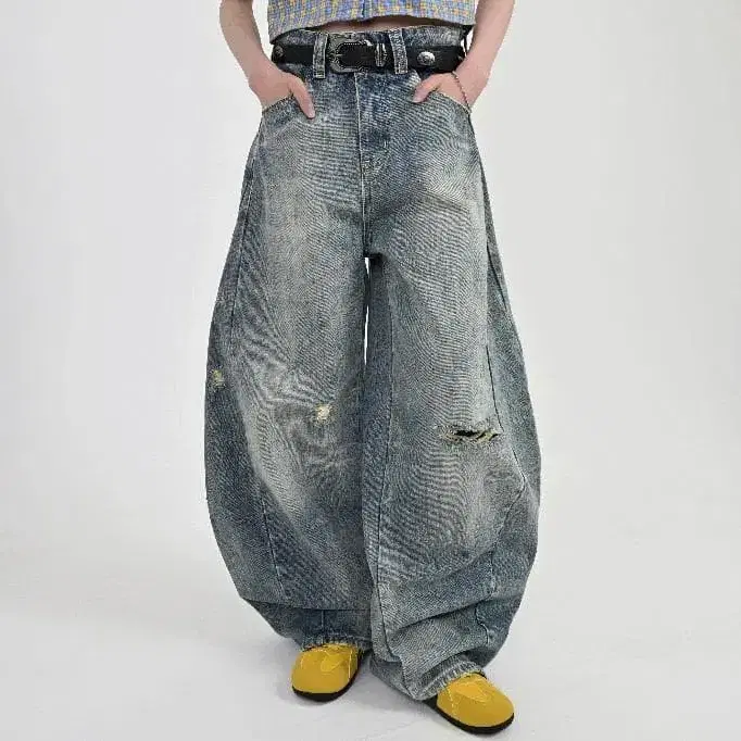 L2079 캐주얼 데미지 벌룬 데님 L 지하인 ONLINE