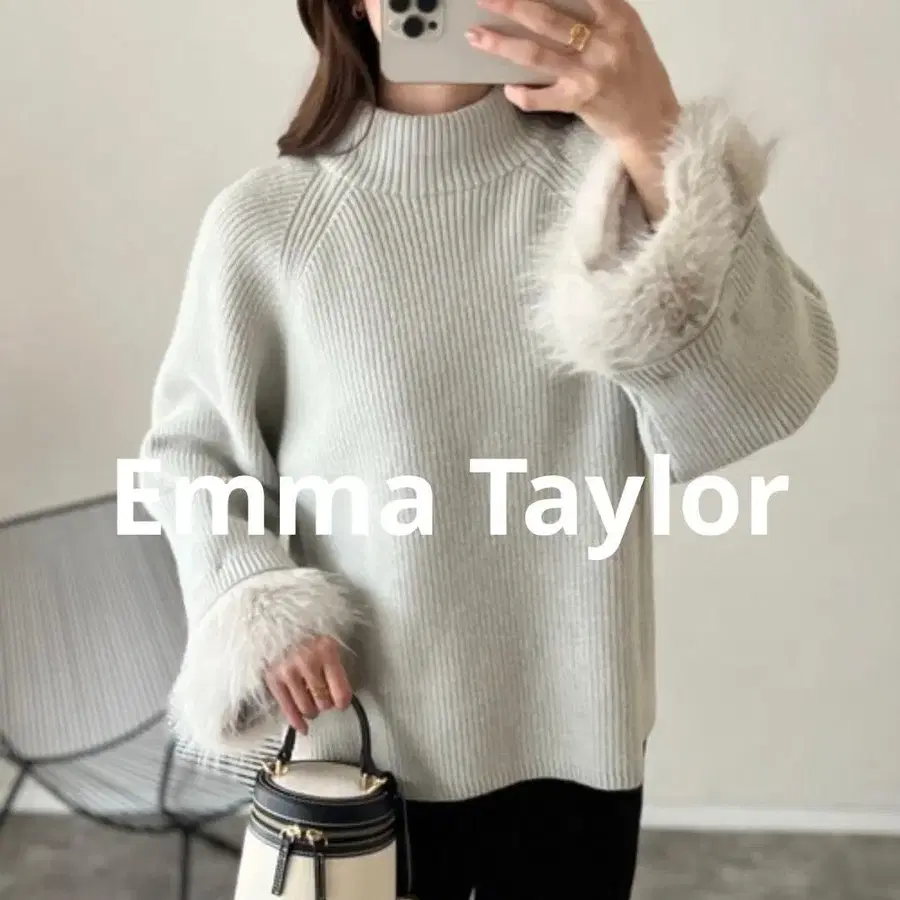 엠마 테일러 퍼 슬리브 보틀넥 니트 풀오버 상의