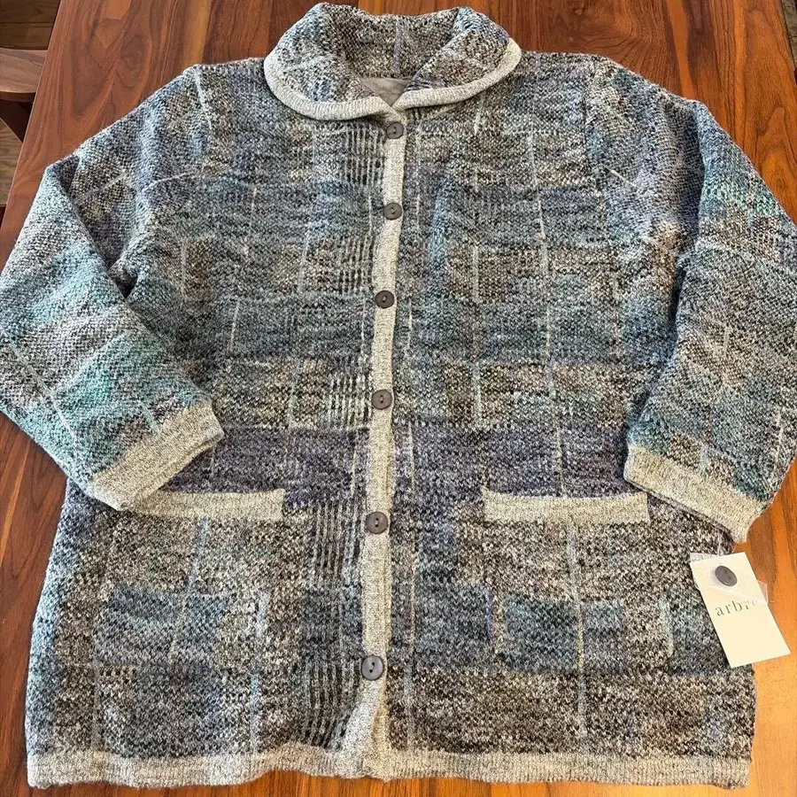 새상품 arbre 체크 무늬 그레이 계열 가디건 M