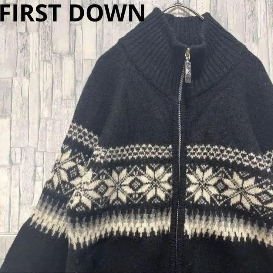 퍼스트다운 드라이버즈 니트 스웨터 노르딕 눈꽃 패턴 M 울