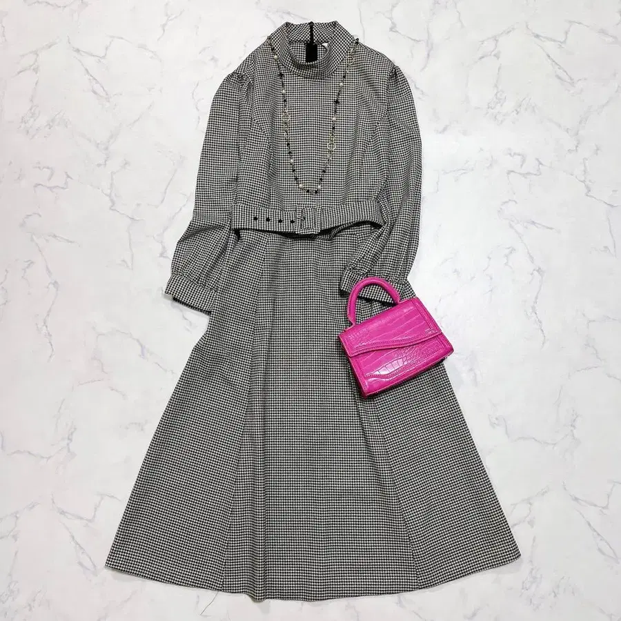 새상품급 ZARA 자라 플레어 원피스 글렌체크 벨트 A라인