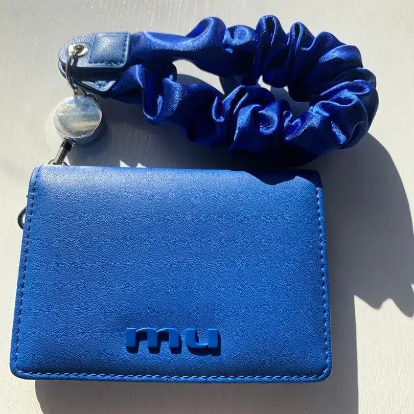 파란색 합성 피혁 카드 케이스 스크런치 포함